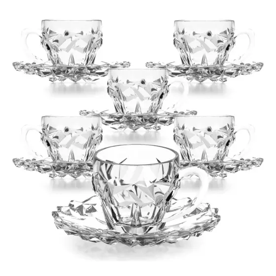 Conjunto de Xícaras de Café com Pires em Vidro Transparente