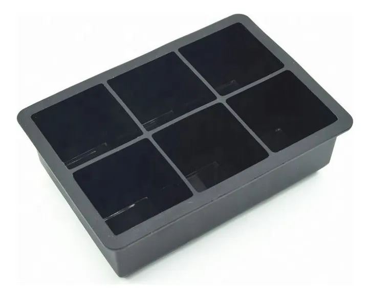 Forma de Gelo Grande 6 Cubos Silicone Quadrado Preto