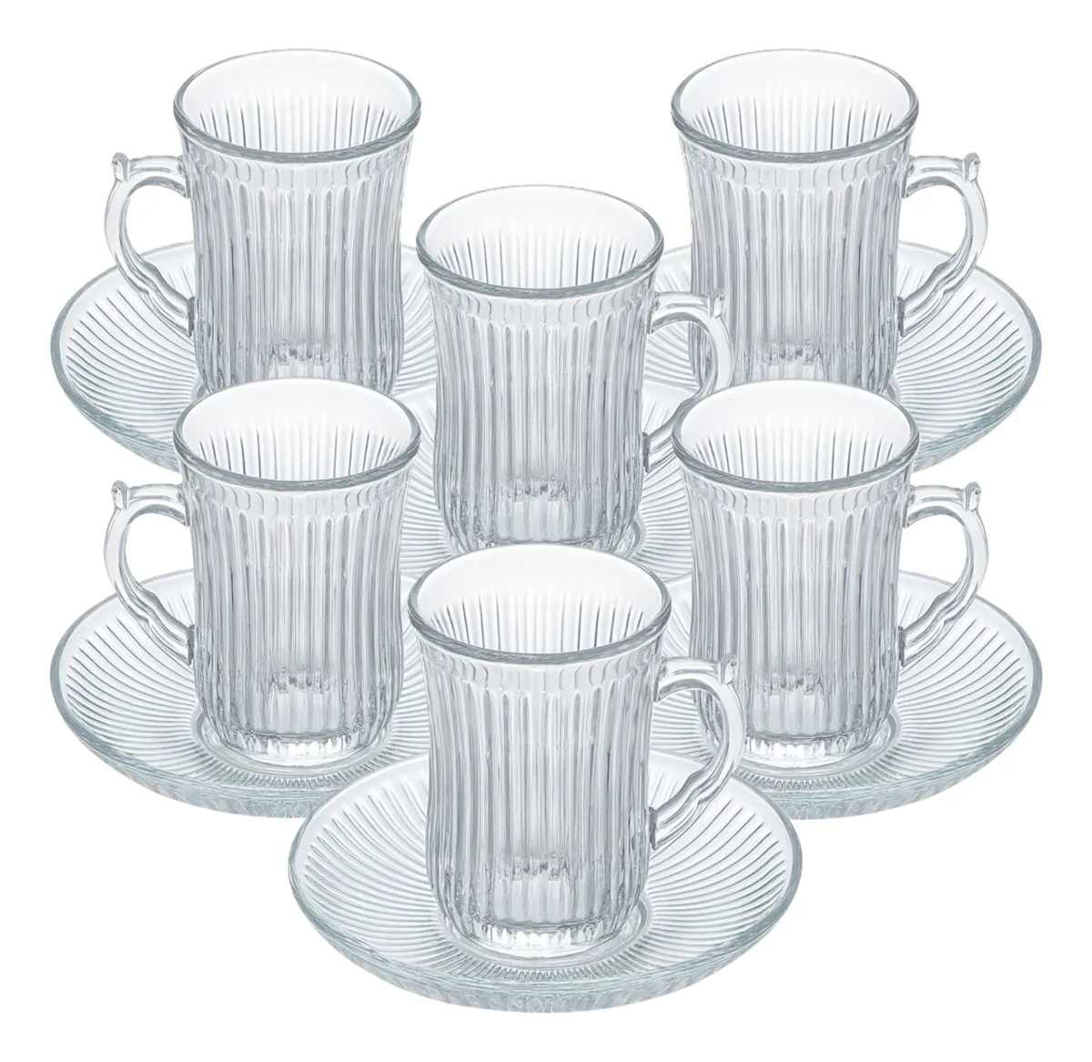 Este lindo e sofisticado conjunto de xícaras com pires em vidro transparente é perfeito para quem valoriza o bom gosto nos pequenos detalhes do dia a dia.