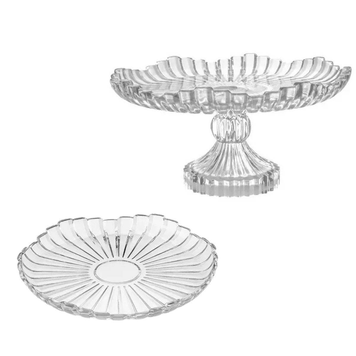 Transforme seus momentos especiais com este lindo kit de 2 boleiras de vidro, perfeitas para servir bolos, doces e salgados com muito charme.